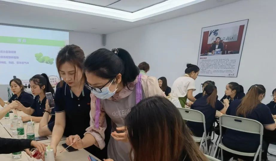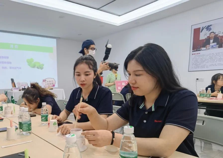 當天下午,公司員工為即將到來的母親節(jié)開展了一場精油唇膏手作活動。